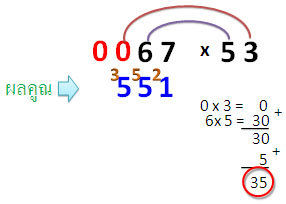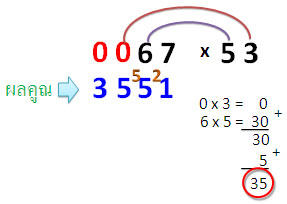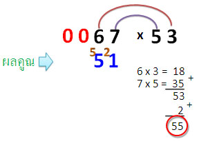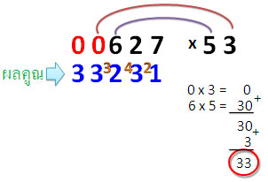 ใส่ 0 ไว้หน้าตัวตั้งเท่ากับจำนวนหลักของตัวคูณ