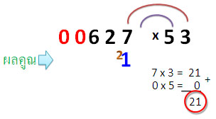 นำผลคูณของสองคู่มาบวกกัน 21 + 0 = 21