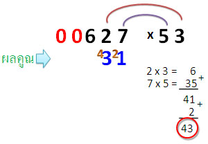 จากนั้นหาผลคูณโดย วิธีคูณสั้น