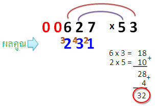 ถ้าคูณแล้วได้เลข 2 หลักต้องทดไปหลักถัดไป