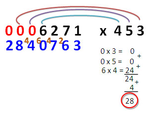 แล้วบวกด้วย 4 ซึ่งทดมาจากหลักหมื่น 24 + 4 = 28